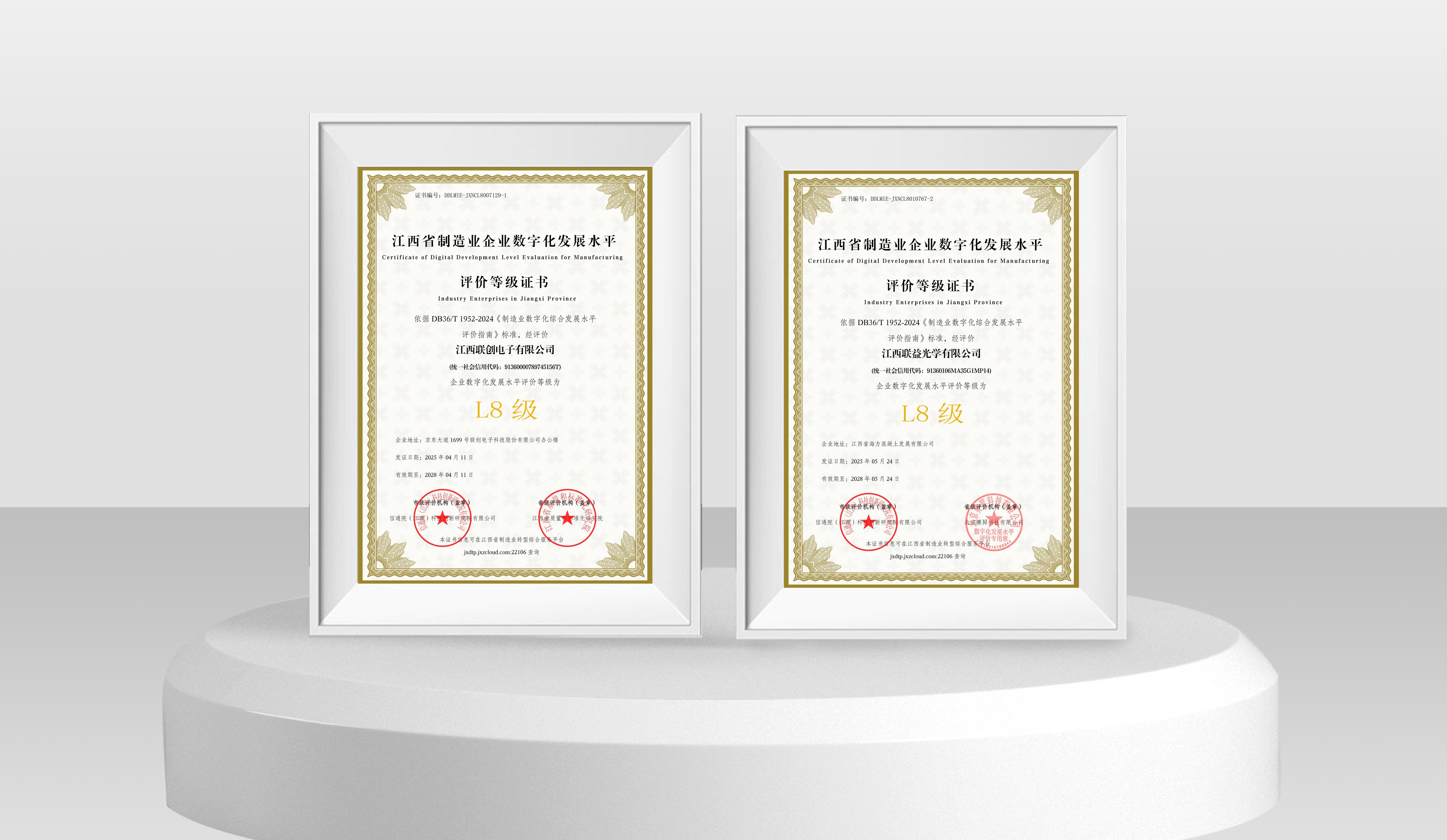 近日,联创电子科技股份有限公司旗下开云网页版,开云kaiyun(中国)(以下简称江西联创)与江西联益光学有限公司(以下简称江西联益)凭借深度集成与创新应用能力,在江西省制造业企业数字化发展水平等级评价中双双达到L8级水平,标志着两家企业在数字化转型领域已跻身全省“集成提升阶段”最高水平,为全省制造业智能化升级树立新标杆。